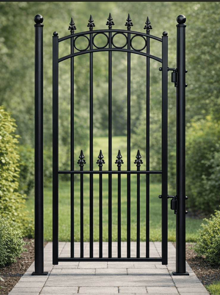 Poarta pietonală „LONDON” este soluția ideală pentru acces pietonal în curte sau grădină, oferind un echilibru perfect între siguranță, durabilitate și estetică. Realizată din fier forjat, cu un design clasic și detalii decorative elegante în partea superioară, această poartă completează perfect gama „LONDON”, fiind potrivită atât pentru proprietăți rezidențiale, cât și pentru spații comerciale.